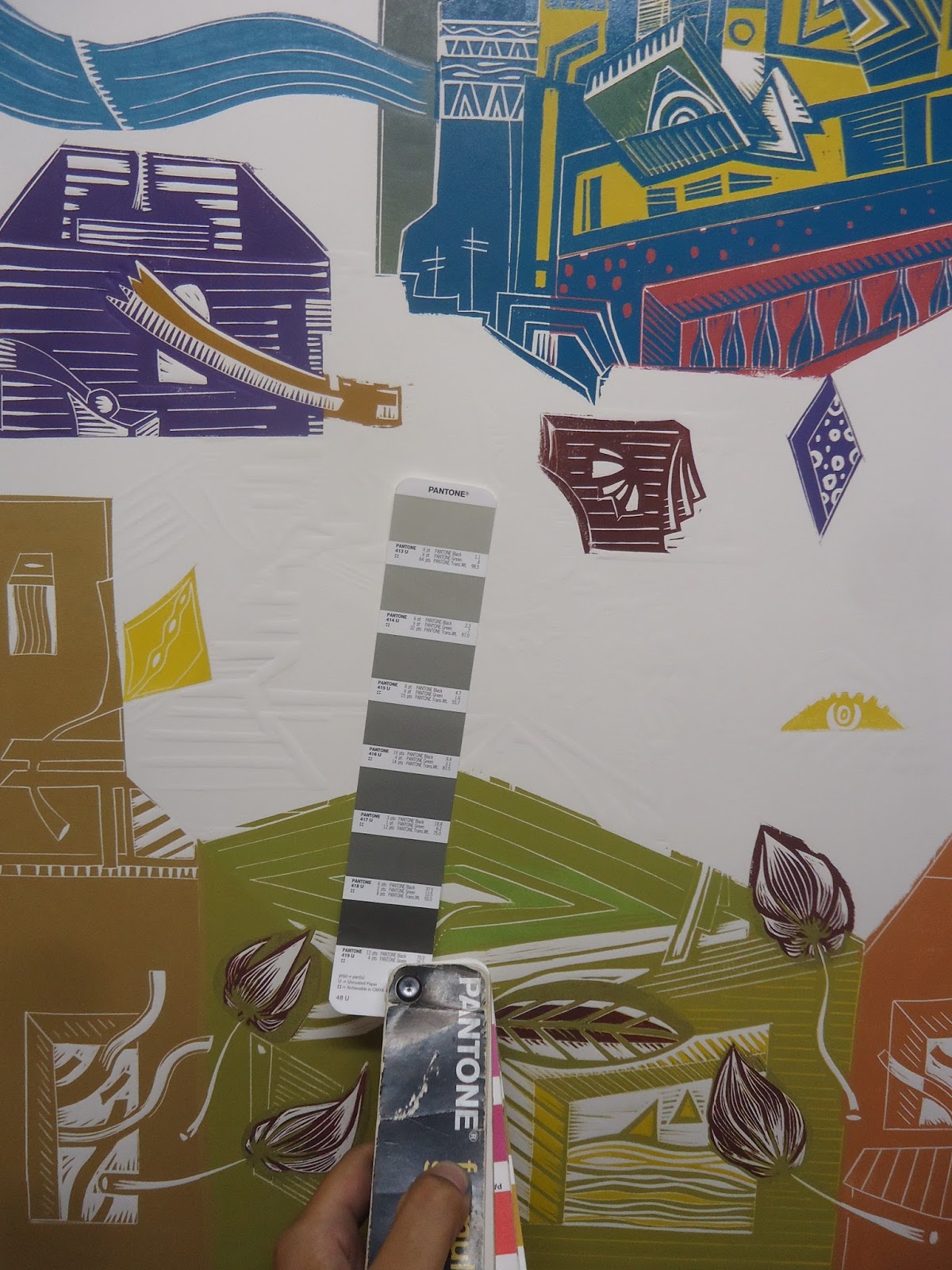 Linograbado a 4 colores.