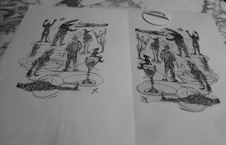 Son 8 grabados en linoleo combinados con la técnica de chiné collé.